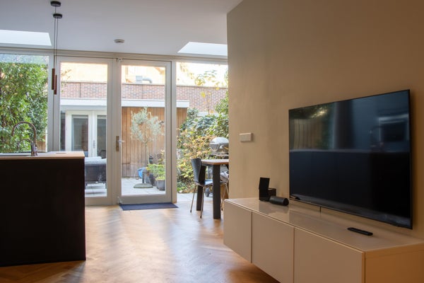 - Een fantastische highlight: de grote en zonnige achtertuin op het zuidoosten met terras en veel privacy. Ideaal voor buiten dineren, loungen en het spelen van kinderen. Een ware luxe in Amsterdam;