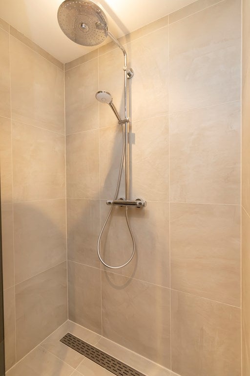 Via de eigen voordeur bereik je het entree op de begane grond. De hal geeft toegang tot een grote slaapkamer, het separate nieuwe toilet en de nieuwe badkamer.