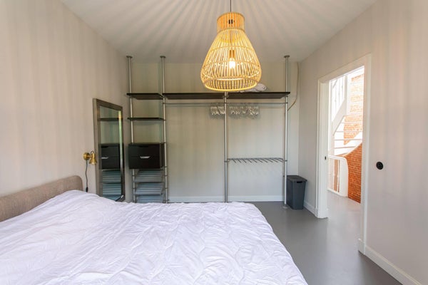 Bij binnenkomst in het appartement zul je onmiddellijk de originele bruine stenen muren langs de trap opmerken, die naadloos zijn geïntegreerd in het ontwerp van het appartement.