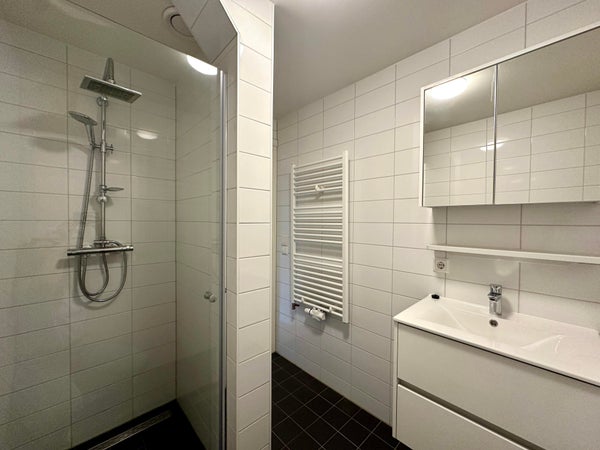 - Badkamer met inloopdouche, wastafel en wasfaciliteiten