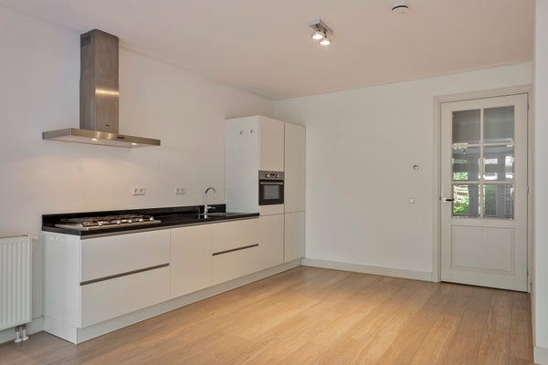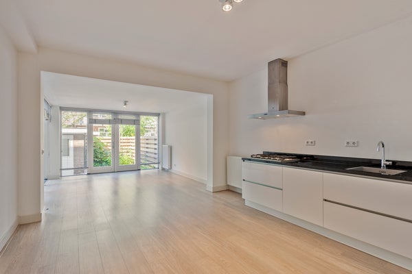 Aan de achterzijde van de woning ligt de ruime woonkamer met open keuken, die is voorzien van een 5-pits gasfornuis, combi-oven, koel-/vriescombinatie, vaatwasser en afzuigkap. Dankzij de openslaande deuren naar de tuin geniet je hier van veel lichtinval en een directe verbinding met buiten. De zonnige tuin is ruim opgezet en gelegen op het zuiden, waardoor je hier het grootste deel van de dag van de zon kunt genieten – ideaal voor een gezellige borrel of ontspannen weekendmiddag.