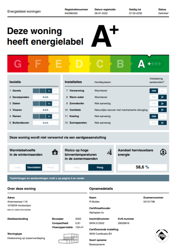 Te huur: Appartement Artemisstraat in Amsterdam