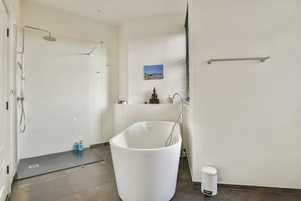 - Volledig uitgeruste badkamer met inloopdouche, apart bad, dubbele wastafel, allemaal met vloerverwarming.