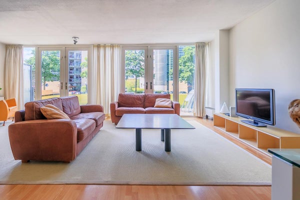 Dit lichte appartement op de begane grond is voorzien van houten vloeren, 2 slaapkamers (mogelijk om meubels/bedden in de 2e slaapkamer te veranderen), ruime badkamer met bad, volledig uitgeruste open keuken, prachtig zonnig terras aan het water, was- opslagruimte met een wasmachine en droger.