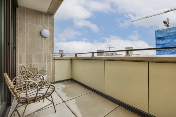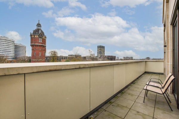 Indeling: Gemeenschappelijke entree met brievenbussen, video-intercom en toegang tot het trappenhuis en de lift. Entree van de woning op de vierde etage. Hal met garderobe en separaat toilet. De lichte woonkamer heeft grote raampartijen en een heerlijk vrij gevoel. Via openslaande deuren bereikt u het eerste balkon, perfect om te genieten van de avondzon. Aangrenzend ligt de masterbedroom, afgescheiden door een stijlvolle room divider met daarachter een maatwerk walk-in closet. De en-suite badkamer is uitgevoerd met luxe materialen, beschikt over een inloopdouche, wastafelmeubel en handdoekradiator. In het verlengde van de woonkamer bevindt zich een ideale werkplek en de interne wasruimte. De open keuken met kookeiland is uitgerust met hoogwaardige inbouwapparatuur en biedt ruimte aan twee barkrukken. Vanuit de keuken is toegang tot het tweede balkon met ochtendzon en uitzicht op de groene omgeving. De tweede slaapkamer aan de achterzijde heeft eveneens een eigen badkamer met inloopdouche, wastafelmeubel en handdoekradiator.