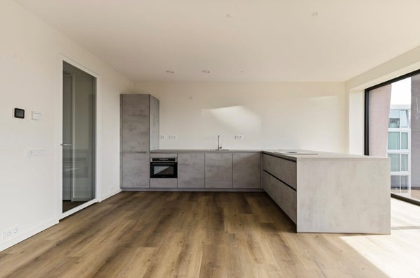 Het appartement ligt op het zuidwesten, waardoor de woonkamer vanaf de vroege middag tot de avond licht en luchtig aanvoelt.