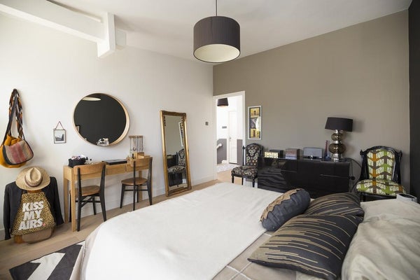 Op de bovenste verdieping, 3 goede slaapkamers. Een aparte inloopkast. De badkamer heeft een bad en douche.