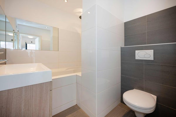 Binnen vindt u een lichte en uitnodigende woonkamer waar u zich meteen thuis voelt. De twee slaapkamers bevinden zich aan de rustige achterzijde van het appartement, elk met een extra ruimte die ideaal is als thuiskantoor, babykamer of inloopkast.