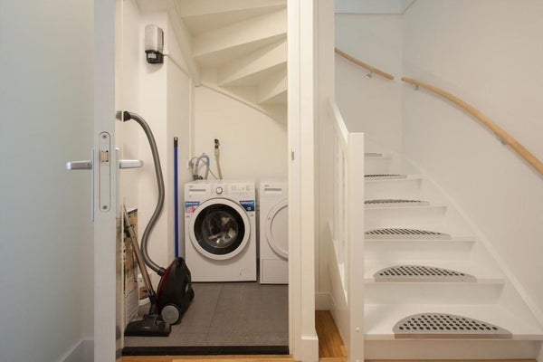 De keuken is volledig uitgerust met inbouwapparatuur, waaronder een oven, magnetron, vaatwasser, koelkast en vriezer. Vanuit de woonkamer is er directe toegang tot de privétuin, een fijne plek om te ontspannen.