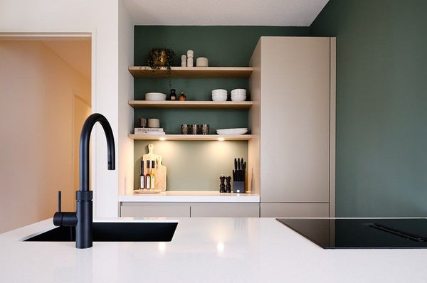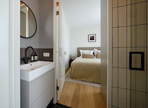 De twee comfortabele badkamers zijn voorzien van inloopdouche en brede wastafel, één badkamer is voorzien van ligbad. Alle zwarte badkamerkranen zijn van het merk Dornbracht, tegelontwerp en tegels van Mosa. De luxe open keuken van SieMatic met kookeiland is van alle gemakken voorzien, waaronder een Quooker-kraan. De apparatuur is van Siemens en bestaat uit een koelvriescombinatie, vaatwasser, combi-oven en recirculatie-fornuis. Het werkblad is van composiet. De drie ruime slaapkamers zijn voorzien van grote ramen voor veel binnenstromend daglicht. De ingebouwde gordijnkoven maken montage van alle typen raambekleding mogelijk: van verduisterend en donker tot lichte voile, voor wie natuurlijk wil ontwaken.