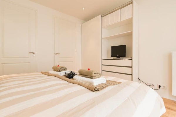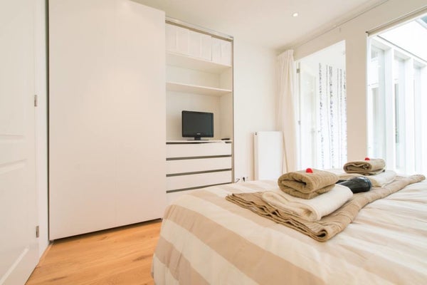 In het hart van de Jordaan ligt dit gezellige 2-slaapkamer appartement van 65m2 met een eigen ingang en een balkon op het zuiden. Het ruime appartement heeft grote ramen die zorgen voor veel natuurlijk licht. De moderne keuken is uitgerust met een vaatwasser, oven en ingebouwde koelkast/vriescombinatie. De woonkamer heeft toegang tot het balkon, perfect om van de zon te genieten. Een bijkeuken met wasmachine/droger en een tweede toilet zijn ook aanwezig. De luxe hoofdslaapkamer heeft een eigen badkamer met douche en bad. De tweede slaapkamer is bereikbaar via de hoofdslaapkamer en heeft nu een eenpersoons boxspring. Gelegen aan een rustige gracht in de Elandsbuurt, dicht bij winkels, bars, en musea.