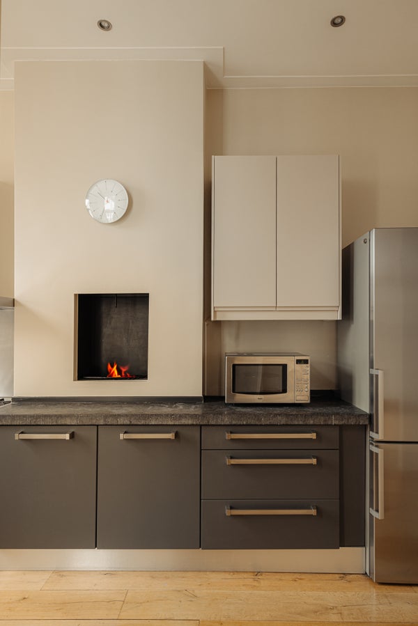 - Gezellige keuken, voorzien van natuurstenen blad en inbouwapparatuur