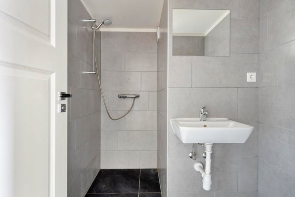 De woonkamer geeft toegang tot een riant dakterras, waar je heerlijk kunt genieten van de zon en het uitzicht over de buurt. Op deze verdieping bevindt zich ook een slaapkamer van circa 10 m² en een nette badkamer met douche, toilet en wastafel.