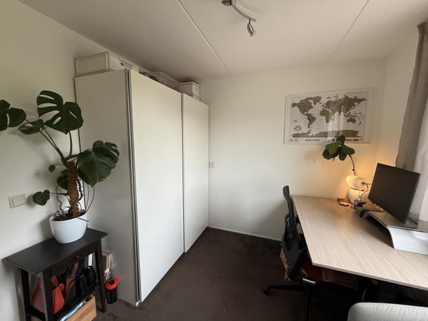 - Drie volwaardige slaapkamers; twee kamers worden gebruikt als werk/logeerkamer, één kamer wordt gebruik als slaapkamer.