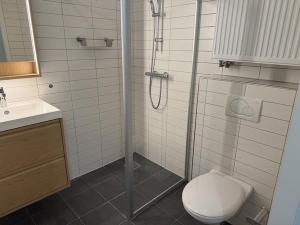 Gezamenlijke entree met trappenhuis. Hal met doorloop naar de slaapkamers, separaat toilet, badkamer met douche en bad, woonkamer met luxe open keuken. Interne en externe berging.