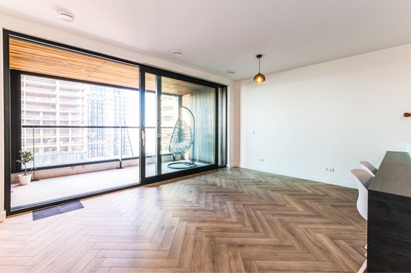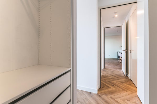 De gemeenschappelijke entree bevindt zich op straatniveau en biedt een stijlvolle ontvangst met een fraaie foyer, brievenbussen, het moderne en praktische BringMe-systeem, en toegang tot het trappenhuis en de lift. Bij binnenkomst in het appartement treft u de ruime hal met toegang tot alle vertrekken. De woning is afgewerkt met een elegante visgraatvloer en stijlvolle gordijnen (niet zichtbaar op de foto’s). De lichte woonkamer met open keuken biedt volop ruimte voor ontspanning én gezelligheid, met een praktische bar aan de keuken. De moderne, luxe keuken is voorzien van alle gemakken, waaronder een BORA-afzuigsysteem en een Quooker. Via de schuifpui bereikt u het zonnige balkon van ca. 11 m², gelegen op het zuidwesten, waar u kunt genieten van de zon én het panoramische uitzicht. Het appartement beschikt over twee slaapkamers, waarvan de master bedroom is voorzien van een ingebouwde kledingkast. De badkamer is hoogwaardig afgewerkt met grote tegels, een inloopdouche en een brede wastafel. Daarnaast is er een aparte wasruimte met een nieuwe wasmachine en droger, die tevens als berging kan dienen.