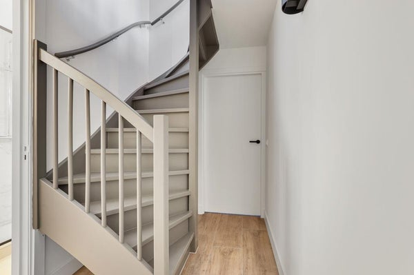 Met de trap bereikt u de sfeervolle woonkamer, voorzien van grote raampartijen, openslaande deuren en een balkon met een uniek uitzicht over de gracht. Op deze verdieping is ook een rustige werkhoek gecreëerd, ideaal voor thuiswerk of studeren. Daarnaast vindt u hier de tweede badkamer, eveneens voorzien van inloopdouche, wastafelmeubel en toilet. De derde slaapkamer op deze verdieping beschikt over een tweepersoons boxspring, kledingkast en een charmant Frans balkon.
