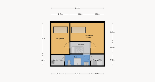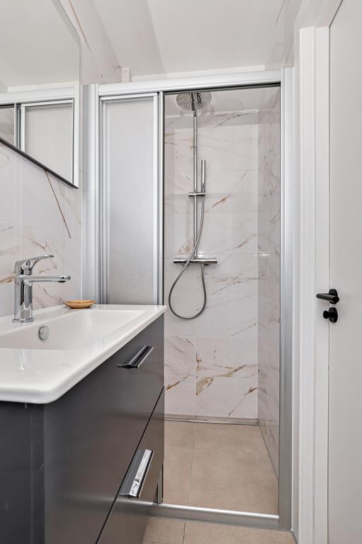 Via een trap vanuit de eetkamer komt u in het souterrain, waar u twee royale slaapkamers aantreft. Hier bevindt zich ook een moderne badkamer met inloop¬douche, wastafelmeubel en hangend toilet. Een apart gedeelte biedt ruimte voor de was-/droogcombinatie. Beide kamers zijn licht en bieden voldoende kastruimte.