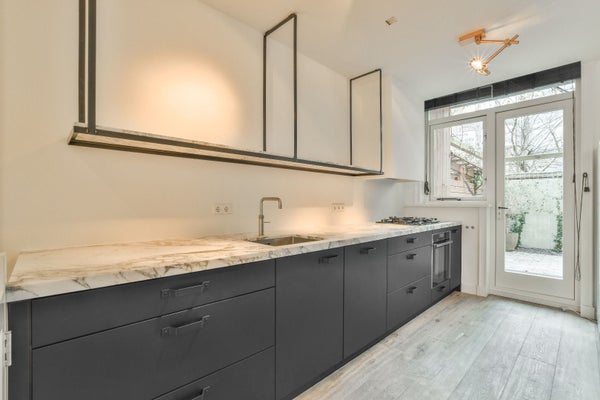 Hoogwaardig gerenoveerd benedenhuis van 110m2 met 2 slaapkamers in het souterrain, tuin op zuid westen gelegen aan de Nassaukade.