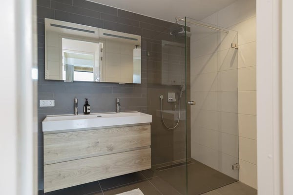Via de hal is de moderne badkamer met inloopdouche, dubbele wastafel en toilet bereikbaar. Beide slaapkamers grenzen ook aan deze hal en zijn beide gesitueerd met zicht op de Amstel. De master bedroom is voorzien van inbouwkasten.
