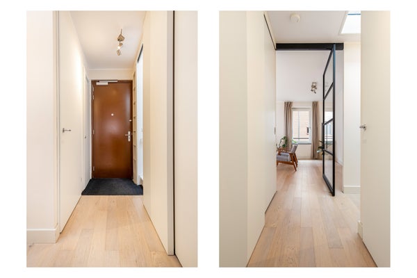 Middels het gemeenschappelijke trappenhuis of de inpandige lift bereikt u dit ruime (109m2 netto) appartement gelegen op de 2e etage van dit nieuwbouw complex genaamd “Kwintijn”. U betreed de woning in de hal, welke toegang verschaft tot de diverse ruimtes van de woning. In de hal vindt u een separaat toilet en een was-/bergruimte. Tevens vindt u op deze een videofoon intercom.
