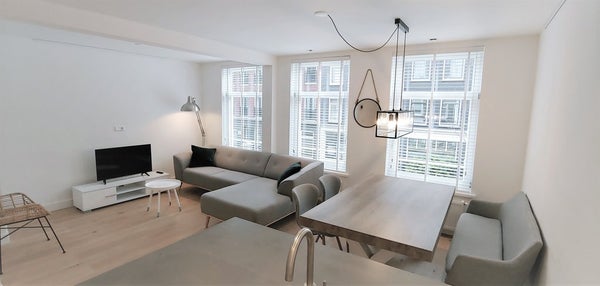 Volledig gemeubileerd twee slaapkamer appartement met groot balkon van ongeveer 57m2 op de eerste verdieping in de levendige Pijp.