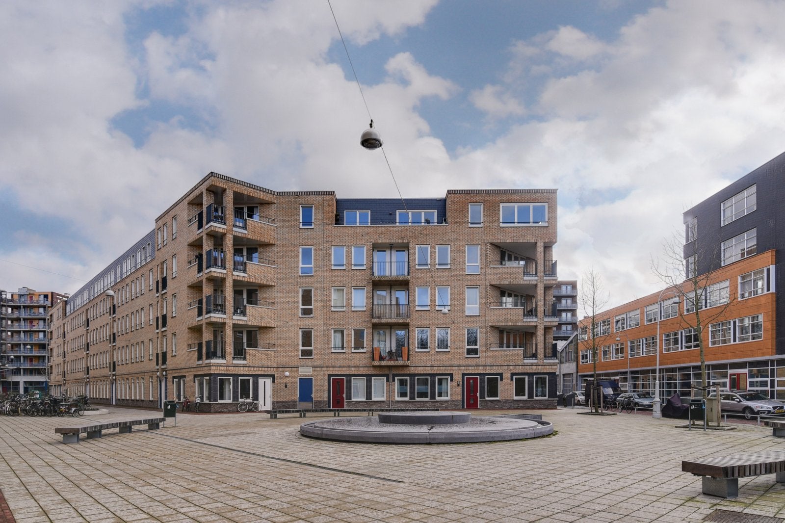Achter bevinden zich de twee slaapkamers; de master bedroom heeft toegang tot een ruim balkon (10 m²) met uitzicht op de binnentuinen.
