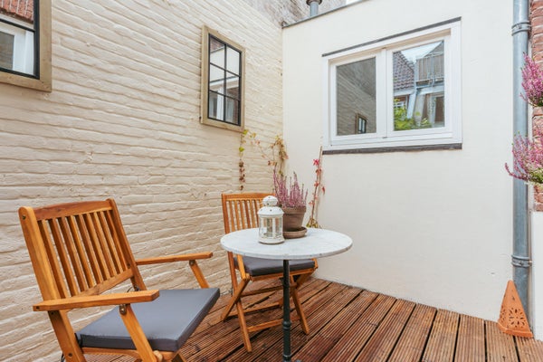 De patio aan de achterzijde vormt een fijne plek om buiten te zitten; beschut en sfeervol, met ruimte voor een eettafel of loungestoel.