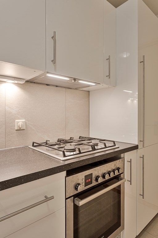De keuken is voorzien van ingebouwde apparaten en veel opbergruimte.