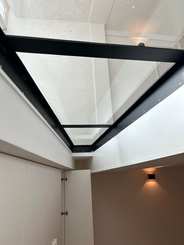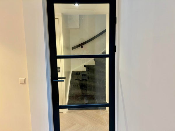 * Binnenplaats met loopglas en moderne stalen kozijnen