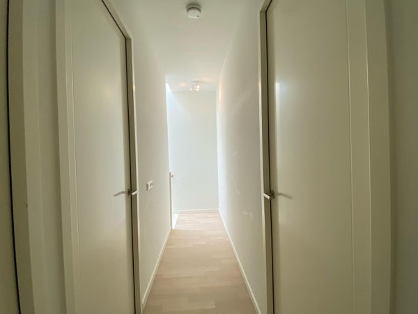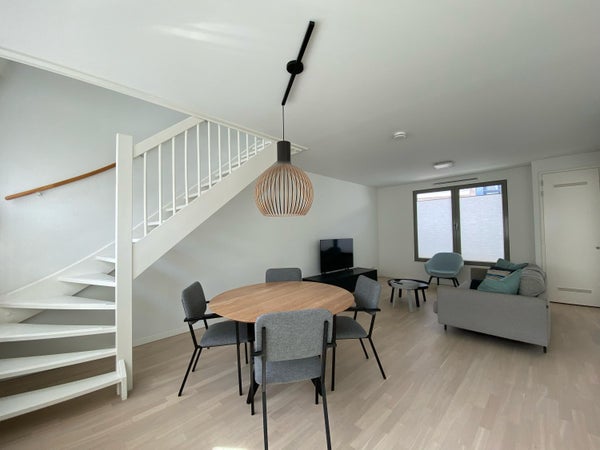 Een interne trap leidt naar de bovenverdieping met drie riante slaapkamers en een stijlvolle badkamer, compleet afgewerkt met hoogwaardige materialen en een modern design.