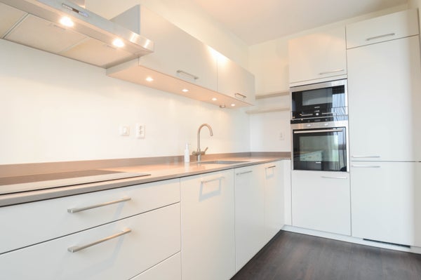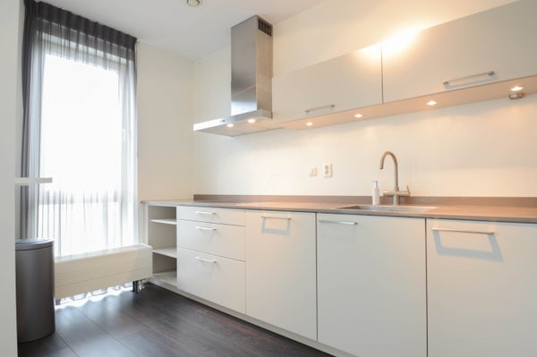 De ruim opgezette woonkamer is door de vele ramen zeer licht. De moderne open keuken is voorzien van al het gewenste inbouwapparatuur, namelijk een 4 pits inductieplaat, afzuigkap, oven, magnetron, koelkast, vriezer en een vaatwasser. In dit appartement zijn twee fijne slaapkamers aanwezig. Beide zijn van een goed formaat.