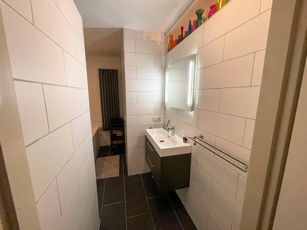 Op deze verdieping vindt u een luxueuze badkamer compleet met ligbad, wastafel, badmeubel en inloopdouche, en een apart toilet. Ideaal voor uw totale ontspanning en persoonlijke verzorging. Het appartement heeft vier kamers in totaal, waaronder twee slaapkamers.