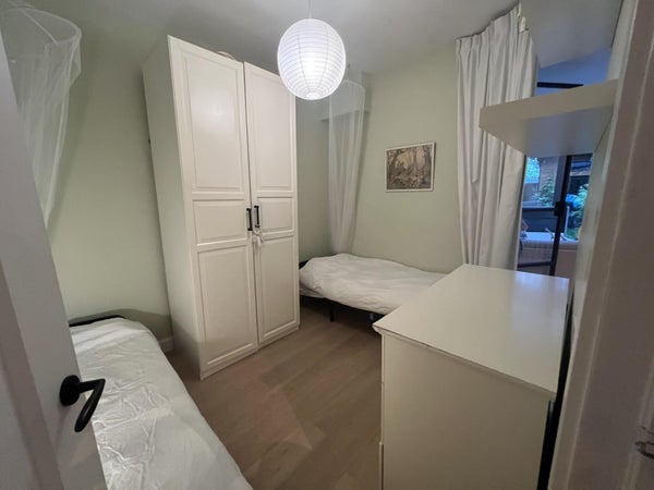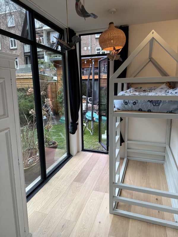 Volledig gerenoveerd luxe 3-kamer benedenwoning met FURNITURE op loopafstand van het Vondelpark. Het appartement heeft een ruime woonkamer en is verbonden met een tuin van 42 m2. Het tuinhuis van 12 m2 kan bijvoorbeeld dienen als werkruimte of gastenverblijf. Het appartement heeft een moderne open keuken met kookeiland en moderne meubels, zoals een 5-pits kookplaat, oven, Quooker en vers gebrande koffiebrander. Toegang tot Netflix, Sonos geluidsysteem, WiFi. Het heeft twee slaapkamers (één kingsize bed en twee eenpersoonsbedden) en een derde kamer die kan dienen als slaapkamer en/of studeerkamer. Verder heeft het appartement een luxe badkamer met douche en apart bad, en een apart toilet. Er is veel interne opslagruimte beschikbaar en de zonnige tuin ligt op het west/zuidwesten. Bovenal zijn er veel mogelijkheden voor kinderen, waaronder een trampoline in de tuin, speelgoed en wieg/kinderbed/kinderstoel voorzieningen.