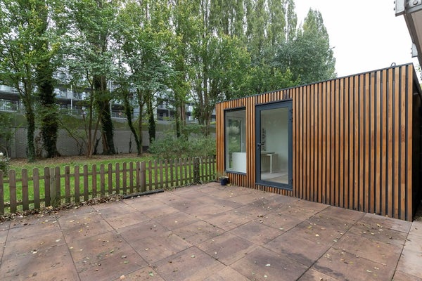 Privé tuinhuis van ca. 10 m² in een gedeelde binnenplaats – perfect als thuiskantoor, opslag of creatieve studio