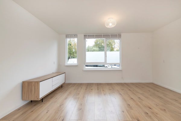 Heldere woonkamer met grote ramen