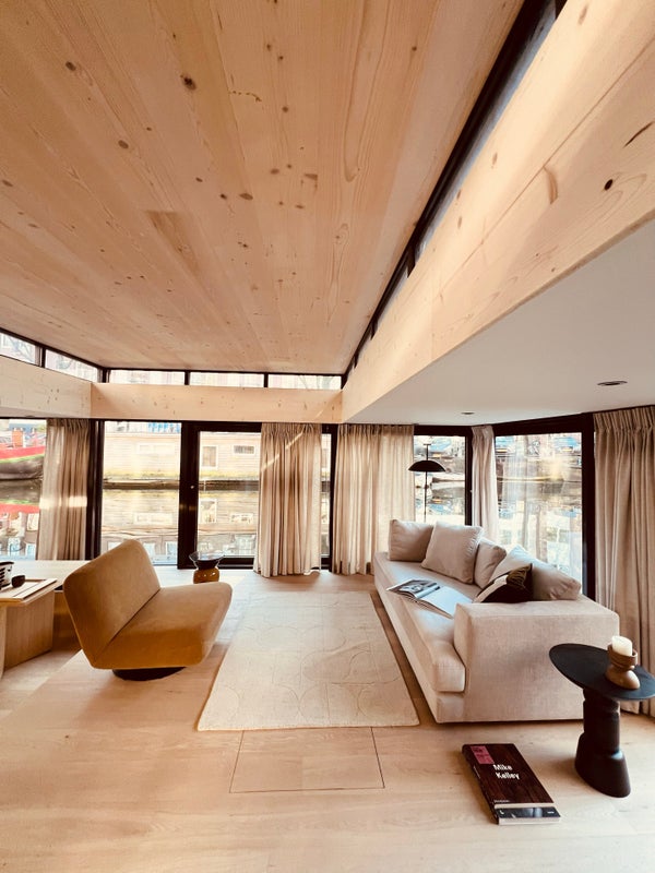Ervaar verfijnd wonen aan het water in deze prachtige nieuw gebouwde huizenboot van architect Bob Ronday, met een verfijnde Japans-Scandinavische designesthetiek. Deze 75m² grote woning aan het water combineert minimalistische elegantie met premium functionaliteit en biedt een serene retraite in het hart van Amsterdam.