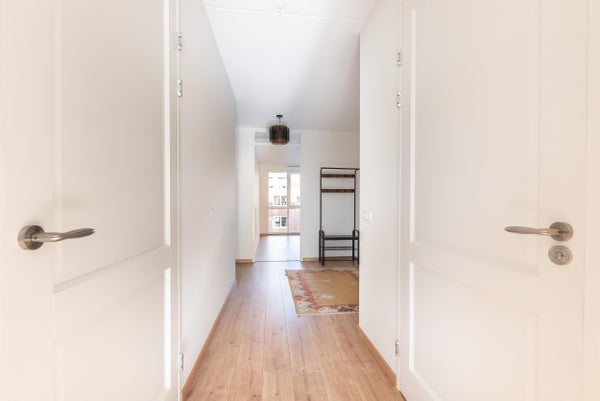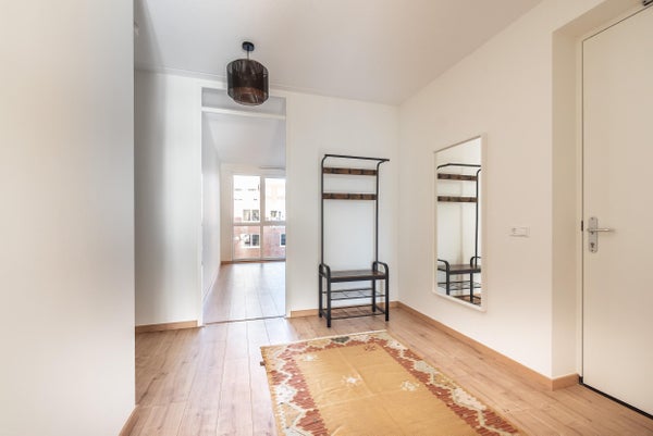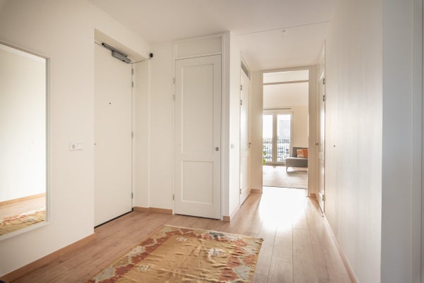 De entree bevindt zich op de derde verdieping van het gebouw. De entree geeft toegang tot alle vertrekken, een inpandige berging met wasmachine en een apart toilet.