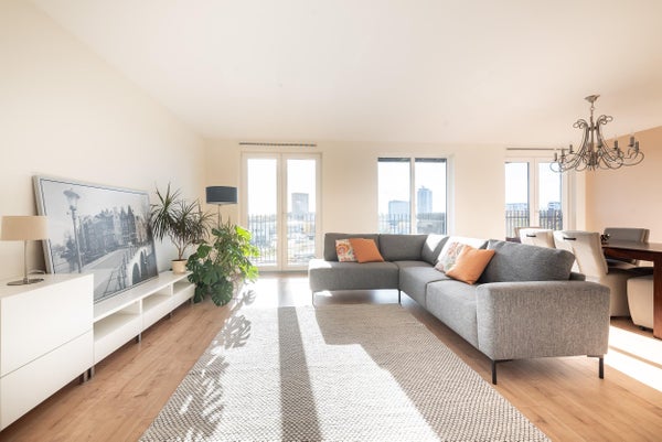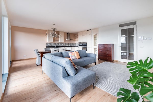 De riante, zonnige woonkamer en de luxe open keuken liggen aan de rustige Bella Vistastraat. U heeft de beschikking over een zonnig terrasbalkon met vrij uitzicht over het Bella Vistapark. De moderne keuken is voorzien van een inductie kookplaat, magnetron, oven, vaatwasser, koelkast, vriezer en een wijnklimaatkast.