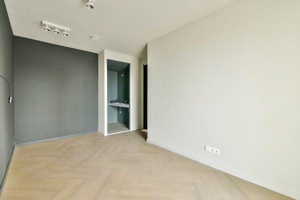 Bij binnenkomst via de lift of het trappenhuis kom je aan bij het appartement. De ruimtelijke en lichte indeling van dit appartement valt direct in het oog. De riante woonkamer is gelegen aan de zonnige zuidzijde en heeft aangrenzend een fijn zonnig terras van bijna 9 m2. De woonkamer heeft zowel aan de achterzijde als aan de zijkant ramen, zodat er een geweldig lichte ruimte is ontstaan. De strakke moderne half open keuken is van het Deense design merk KVIK, en is uiteraard voorzien van luxe inbouwapparatuur. Naast de woonkamer bevinden zich twee slaapkamers. Daarnaast is er de riante ouderslaapkamer met eigen badkamer. Deze badkamer is voorzien van een fraaie inloopdouche, een toilet en een wasmeubel.