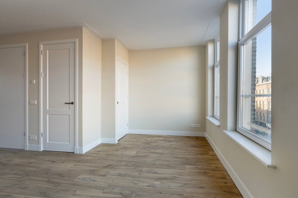 De derde verdieping biedt een royale doorzonwoonkamer met volop licht dankzij de grote ramen aan zowel de voor- als achterzijde. Aan de achterzijde bevindt zich de moderne open keuken, voorzien van alle gemakken: een koel-vriescombinatie, combi-oven, inductiekookplaat, afzuigkap, vaatwasser, wijnklimaatkast en een Quooker voor direct kokend water. Daarnaast vind je op deze verdieping een apart toilet en een praktische ruimte voor de wasmachine.