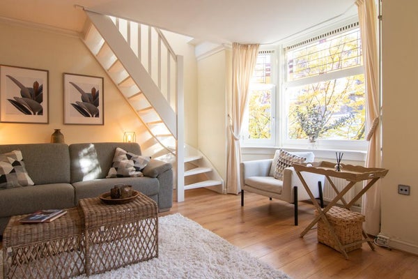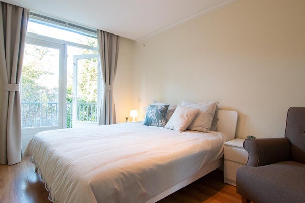 Charmant volledig gemeubileerd appartement gelegen op de 3 bovenste verdiepingen van een typische jaren '30 woning/straat met glas-in-loodramen. Dichtbij de Stadionkade (50 m) waar je je boot kan parkeren als je dat wenst. Het appartement zelf is voorzien van een comfortabele woonkamer, een kwalitatief goede badkamer met bad, volledig uitgeruste keuken, studieruimte en drie slaapkamers. Buiten vind je een lang balkon dat aan de 2 slaapkamers en de keuken is bevestigd en een geweldig zuidwest gericht dakterras (24M2) waar je bijna de hele dag van de zon kunt genieten!