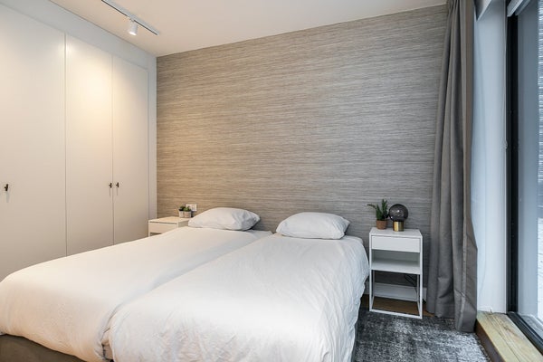 Aan de achterkant van het appartement op straatniveau vindt u de 2 slaapkamers en 2 badkamers.