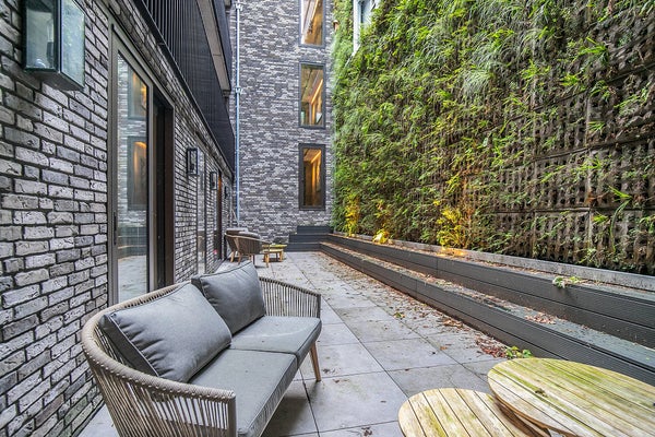 U komt het appartement direct vanaf de straat binnen via massieve glazen deuren waardoor het natuurlijke licht gemakkelijk door het hele appartement schijnt.