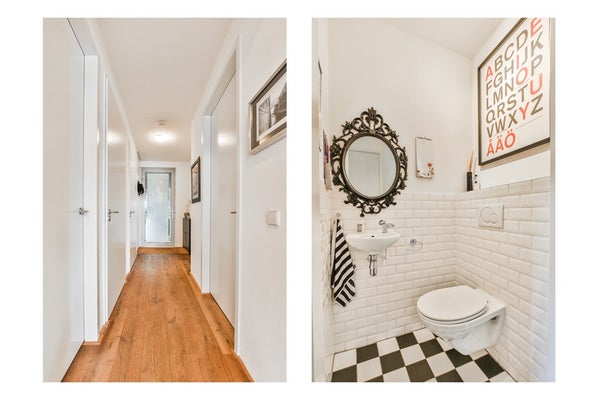 Entree via de gemeenschappelijke ingang en de lift naar de eerste etage. De hal geeft toegang tot alle vertrekken.