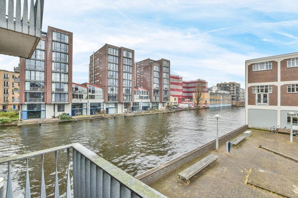 Aan de achterzijde van de woning bevindt zich de woonkamer met open keuken met uitzicht op de Kostverlorenvaart. Via de woonkamer is er tevens toegang tot het balkon. De keuken is voorzien van een ijskast, afwasmachine, oven-magnetroncombinatie en een gaskookplaat.