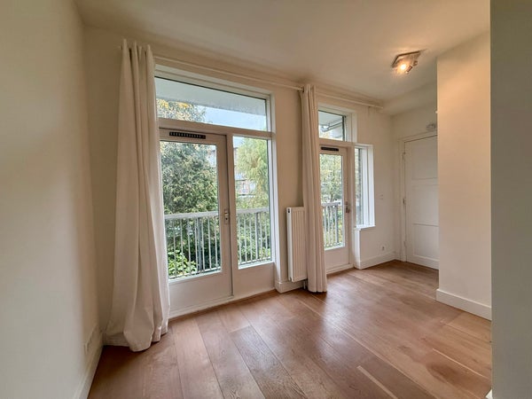 Het appartement beschikt over twee comfortabele slaapkamers, een moderne badkamer en een separaat toilet. Aan één van de slaapkamers grenst een prachtig gerenoveerd balkon, waar u heerlijk kunt genieten van de buitenlucht en de zon. De grote ramen zorgen voor een lichte en ruimtelijke uitstraling, waardoor het geheel een fijne, uitnodigende sfeer ademt.