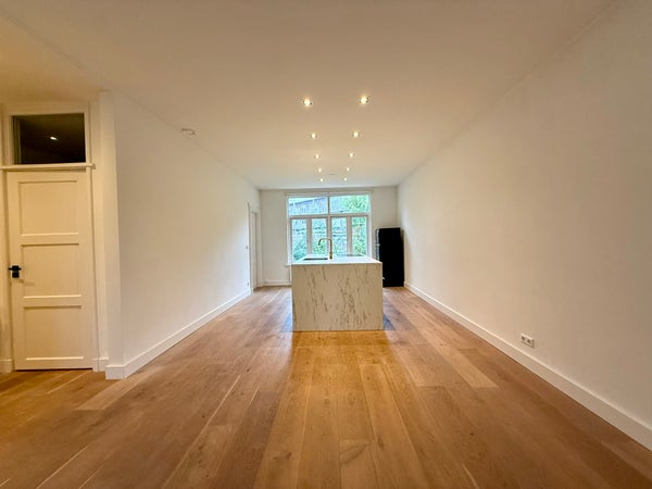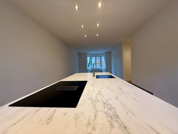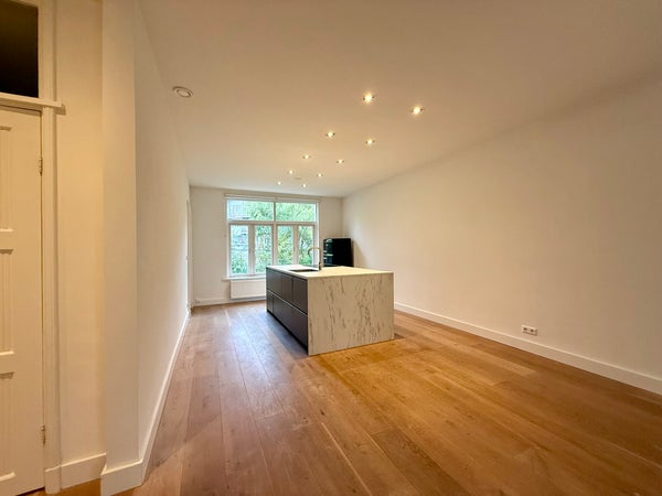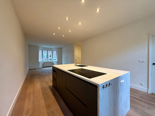 Middels de entree en het trappenhuis bereikt u het appartement op de eerste verdieping. Bij binnenkomst komt u direct in de sfeervolle, open living met een royale woonkeuken. De moderne keuken met ruim keukeneiland is volledig uitgerust en voorzien van alle benodigde inbouwapparatuur, zoals een vaatwasser, oven, magnetron, inductiekookplaat, afzuigkap en een koel-vriescombinatie. Dankzij de open indeling vormt de keuken het hart van het appartement; de perfecte plek om te koken, borrelen en samen te komen.