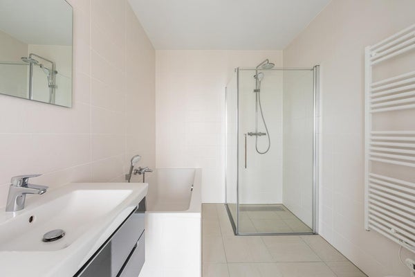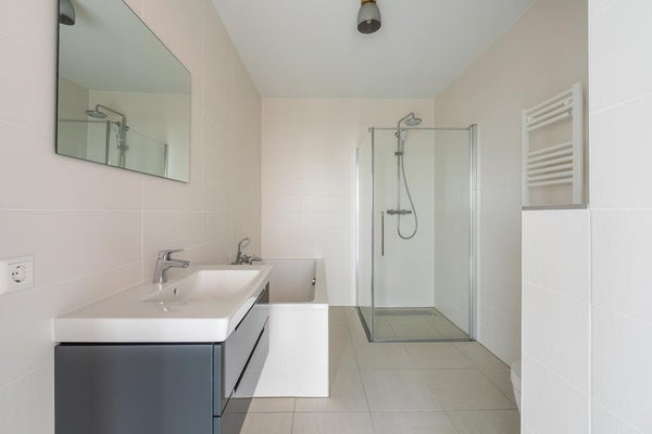 De slaapkamer is toegankelijk via de woonkamer en beschikt over een walk-in closet die eventueel als werkkamer gebruikt kan worden. De en-suite badkamer heeft een luxe uitstraling en is voorzien van een toilet, inloopdouche, wastafel en ligbad.