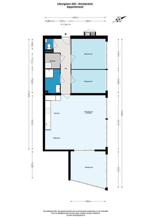 Gebouw voorzien van een lift. Entree op de vierde verdieping. Hall geeft toegang tot alle vertrekken. Twee gelijkwaardige slaapkamers, ruime badkamer met douche en wastafel. Separaat toilet. Ruime woonkamer met open keuken, voorzien van inbouwapparatuur o.a. vaatwasser, ijskast en oven. zonnige Loggia om heerlijk te genieten van het uitzicht over het IJ. Inpandige berging in de kelder.